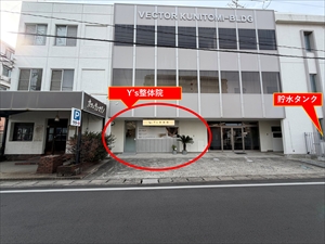 駐車場はビルを過ぎて貯水タンクを左折して入ります。 -